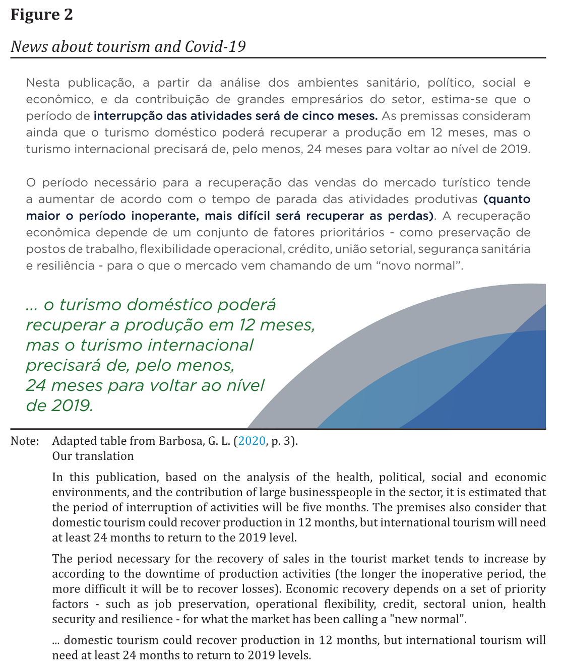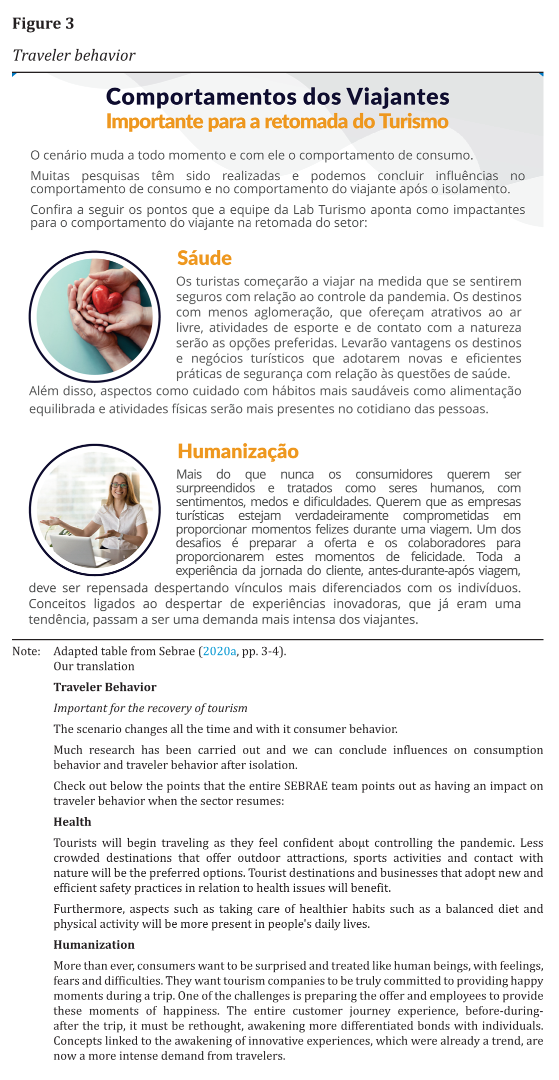 In the constant search for information about the resumption of operations in the segment, when searching the internet, Breno found an article on the Sebrae website, about the tourism scenario and the behavior of travelers in the post-pandemic (Figure 3), which projected the search for less explored destinations, outdoors, in contact with nature and with greater exclusivity (without crowds).