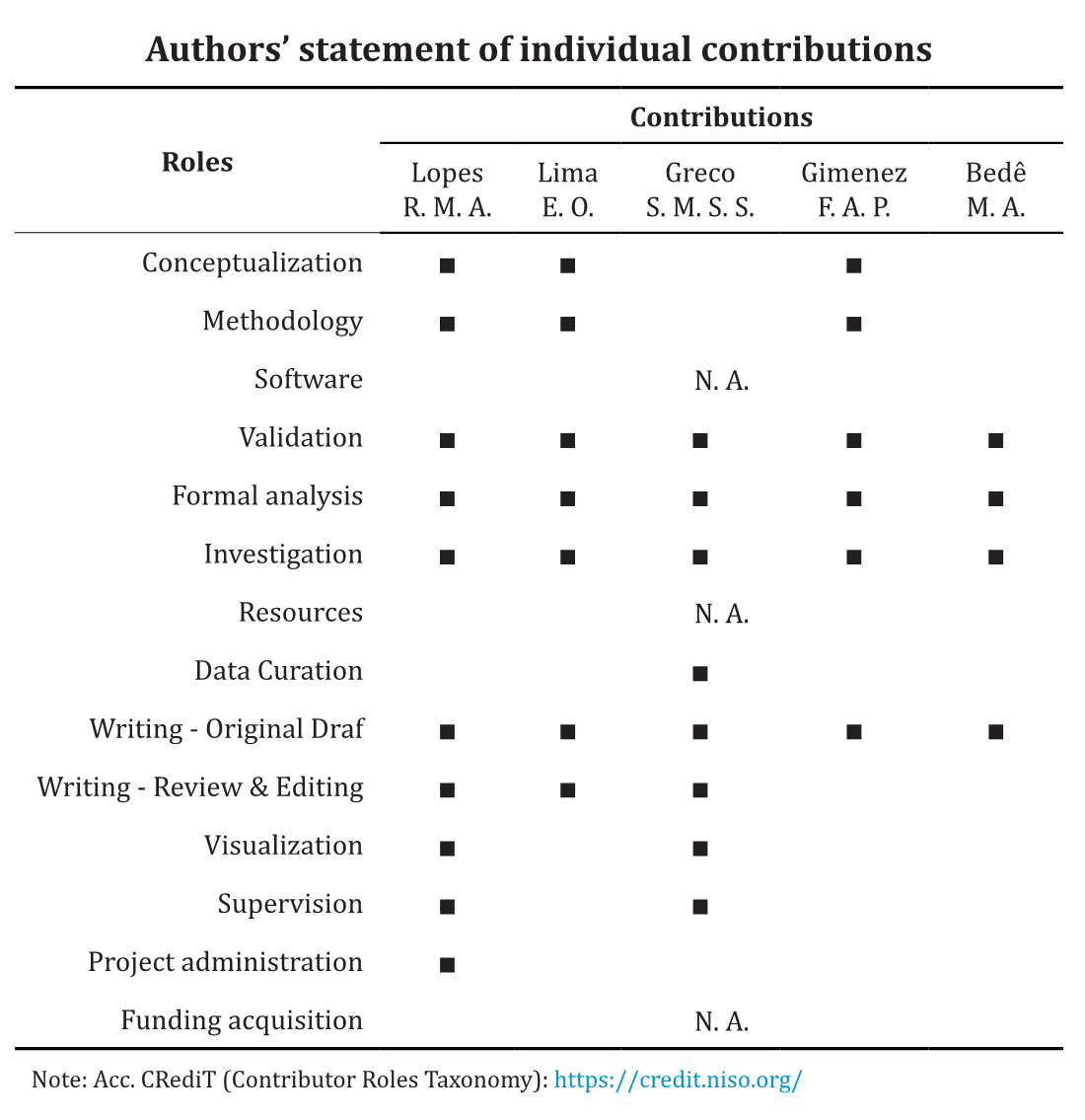 Authors’ statement of individual contributions