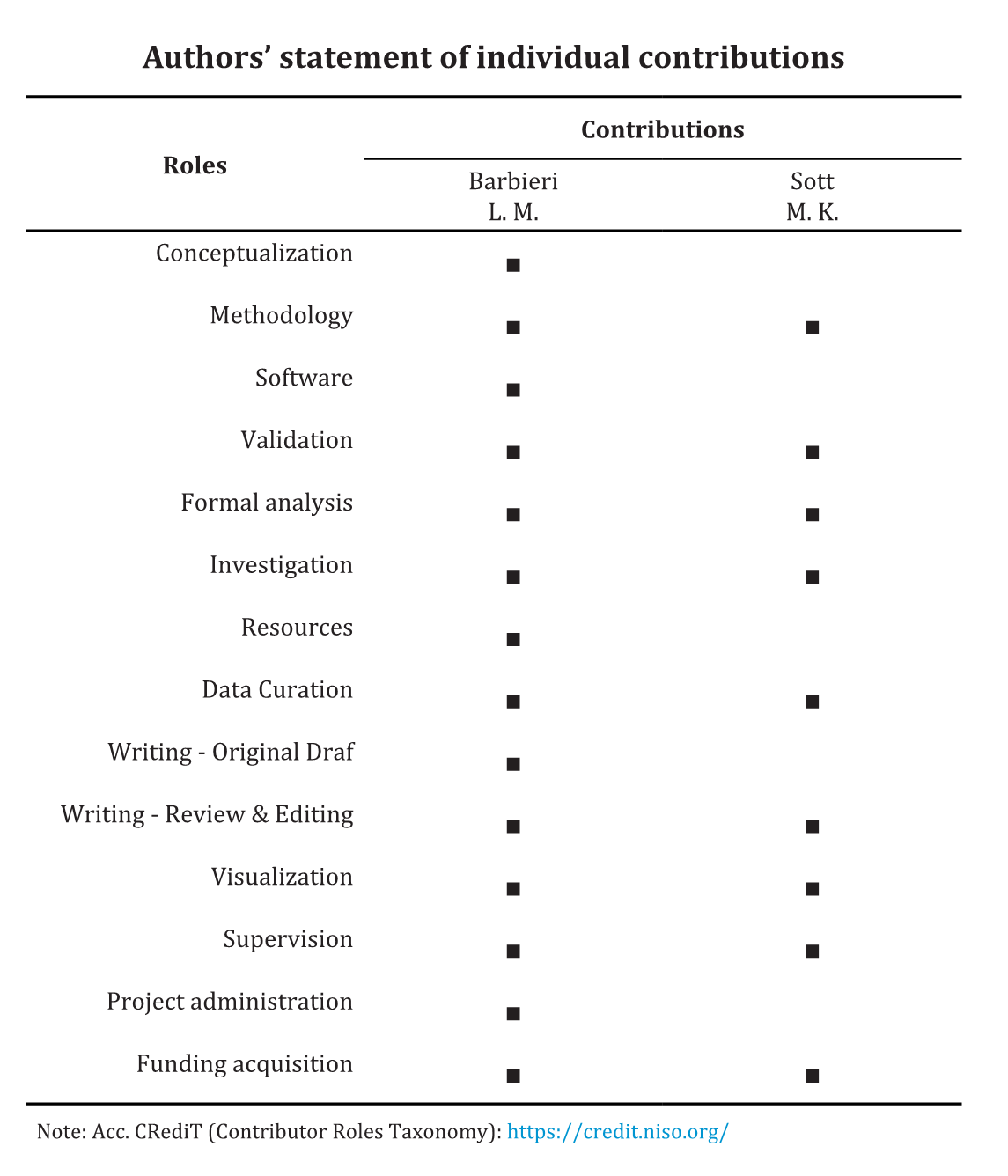Authors’ statement of individual contributions