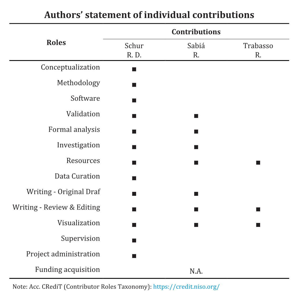Authors’ statement of individual contributions