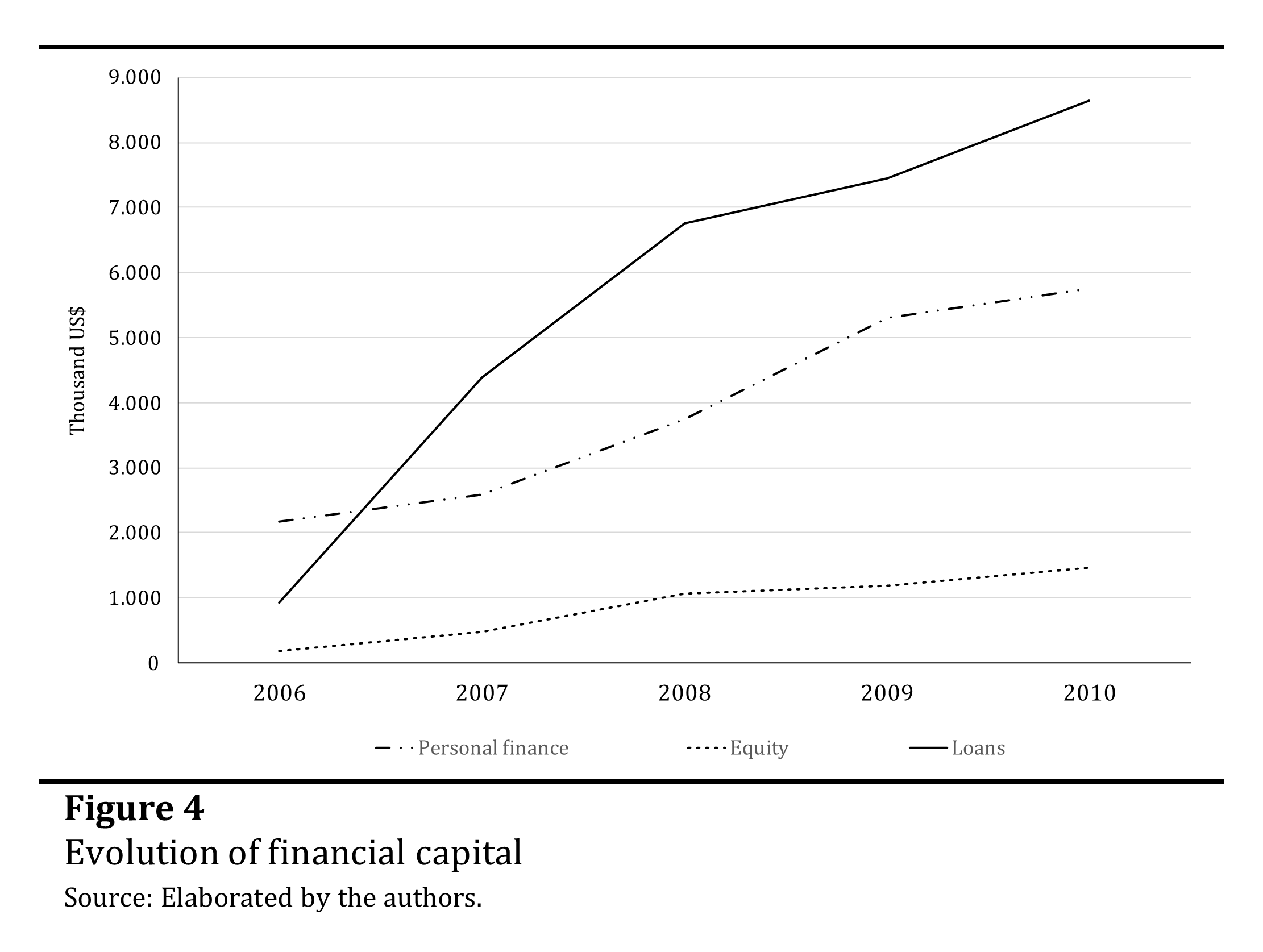 Figure 4 shows the evolution of accumulated financial resources. In the first year there was a greater use of personal finances, a fact that changes for the second year, when loans became more representative.