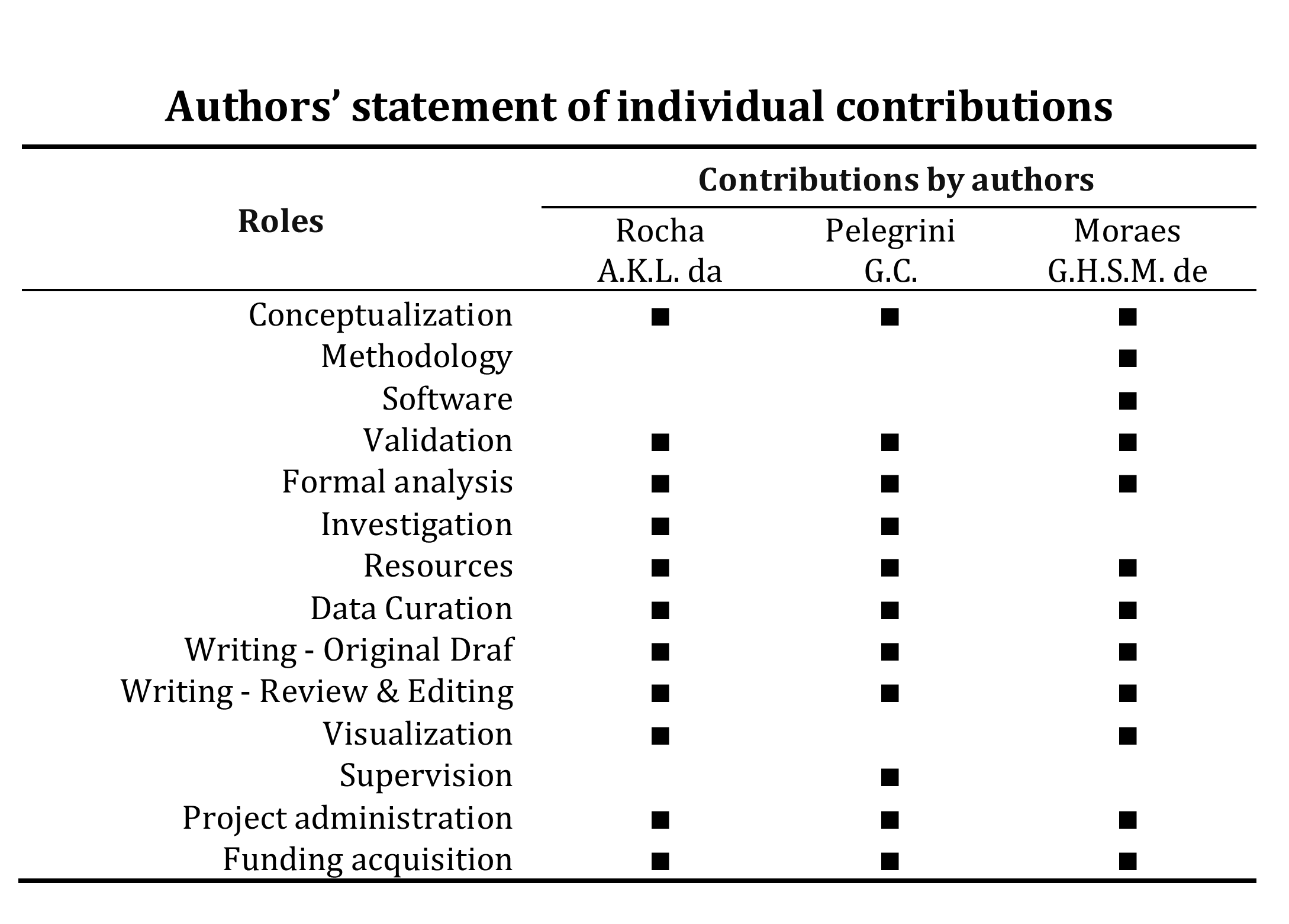 Authors’ statement of individual contributions