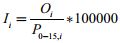 i identifica a la comuna (i = 1, 2, …, 22), Oi es el número de casos de cáncer