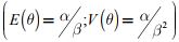 la relación que existe entre la media (E(θ)) y la varianza (V(θ)) con