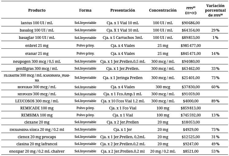 En esta medida, se encontraron los siguientes biológicos, con determinados biosimilares, aunque no tienen como tal esta denominación: