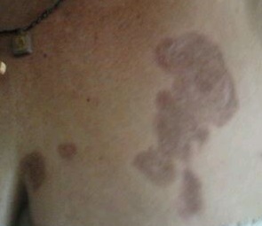 Continuó el tratamiento con 75 mg de Prednisolona cada 24 horas y el preparado para la cavidad bucal durante 3 semanas más. Al examen estomatológico la mucosa oral estaba sin lesión alguna y al examen físico por dermatología se evidenció que las lesiones cutáneas desaparecieron por completo dejando solo máculas hiperpigmentadas no dolorosas (figura 5). Debido a esto, el tratamiento bucal con la fórmula magistral se suspendió y el servicio de Dermatología comenzó terapia para evitar recidiva de la enfermedad disminuyendo el 20 % de la dosis de prednisolona cada 2 semanas hasta llegar a los 15 mg, luego de dos semanas se disminuye a 5 mg, y por 4 semanas más se instaura dosis de 10 mg cada 48 horas.