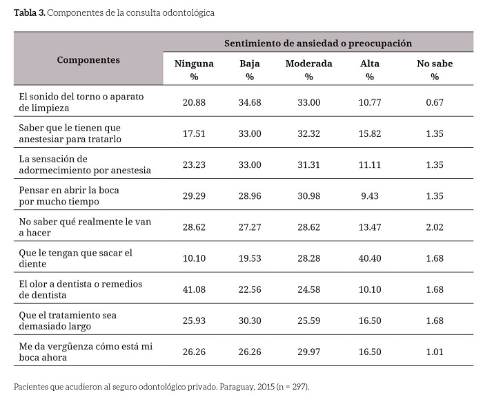 Por su parte, la ansiedad dental se ha descrito como el miedo a la consulta o al tratamiento odontológico, constituyéndose en una de las dificultades más frecuentes para el profesional, con gran impacto en la salud oral (4, 5).