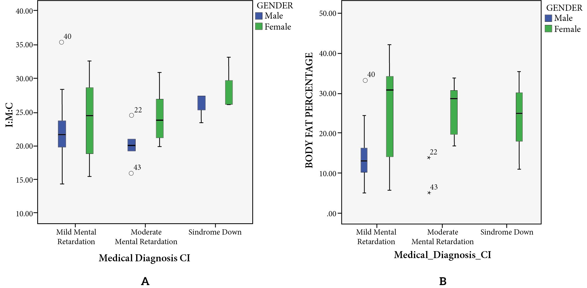 On the other hand, similarities with studies performed in population with id in other countries focused on assessing physical fitness associated with health were found, thus corroborating that overweight and obesity have become a problem of public health that are also present in the id population, not only in developed countries, it is also increasing in Latin America and, of course, in Colombia, as it was evidenced in this study (4, 8, 22).