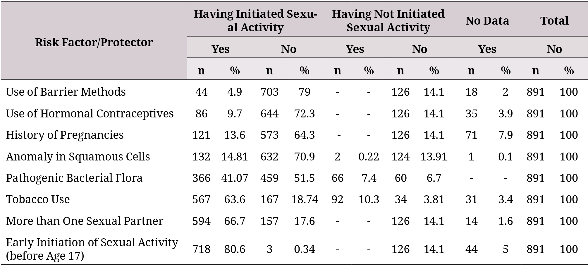 Risk factors are fully known. The human papillomavirus infection (hpv) is considered a necessary though not sufficient condition (8,9,10,11). Other risk factors are described such as precarious socioeconomic conditions, use of tobacco, initiation of sexual activity at an early age, having more than one sexual partner, sexual activity without using a barrier method, and early age at the first pregnancy (11, 12).