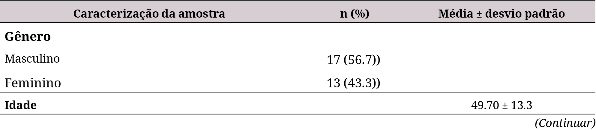 As características gerais da amostra estudada (n=30) estão demonstradas na tabela 1.