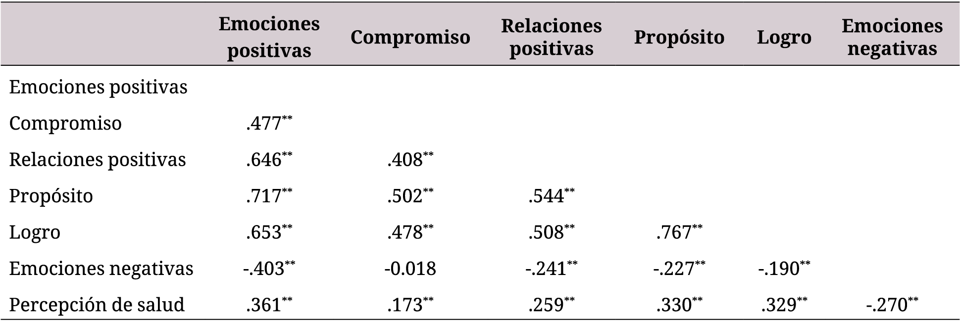 Desde el punto de vista psicométrico, los valores encontrados permiten solo afirmar adecuados niveles de validez convergente con respecto a la correlación entre la dimensión de emociones positivas y la dimensión de percepción de salud (37).