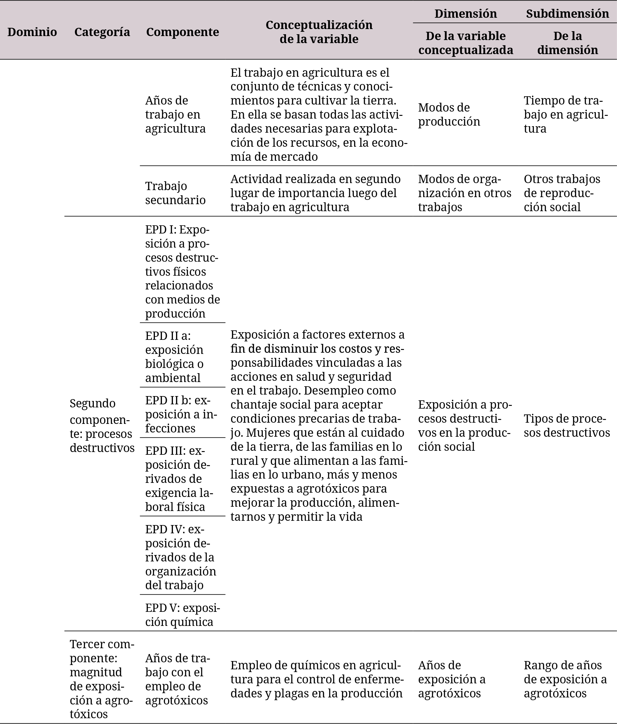 Por ello, para esta investigación se aplica la herramienta metodológica de la matriz de procesos críticos, desarrollada en el marco de la Epidemiología crítica, cuyo autor es el doctor Jaime Breilh. Así, con esta matriz las comunidades con mayor o menor exposición a agrotóxicos dentro de sus socioecosistemas fueron caracterizadas en su contexto sociohistórico, desde sus modos de vida particulares y el desarrollo de procesos destructivos, físicos, químicos, ambientales y posturales o ergonómicos. También se evaluó la práctica de procesos protectores como la capacitación en el trabajo, la actividad física, el control de salud y la calidad de la alimentación. Se consideraron, también, los estilos de vida, y dentro de ellos el componente de vulnerabilidad, identificado desde el perfil de salud y de las pruebas de laboratorio.
