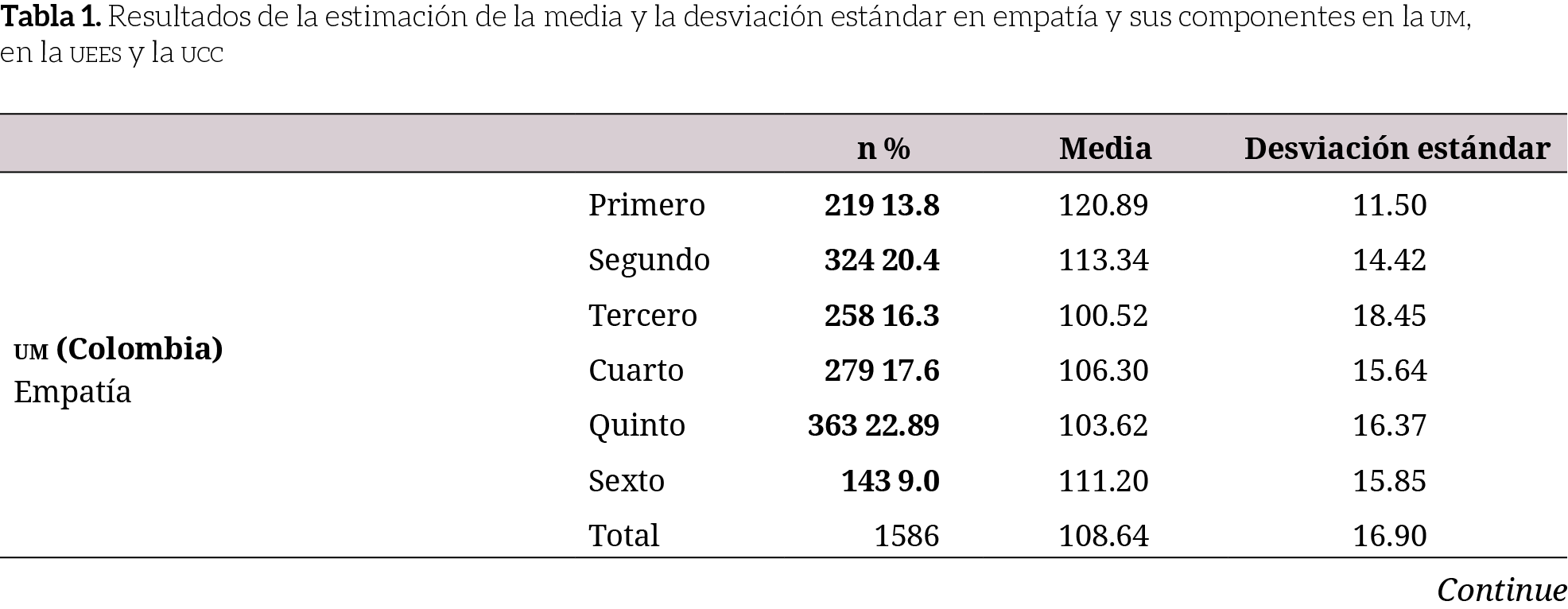 En general, se observaron dos formas diferentes de comportamiento de la empatía: una con presencia de declinación empática (UM) y otras donde no se manifiesta (UEES y UCC).