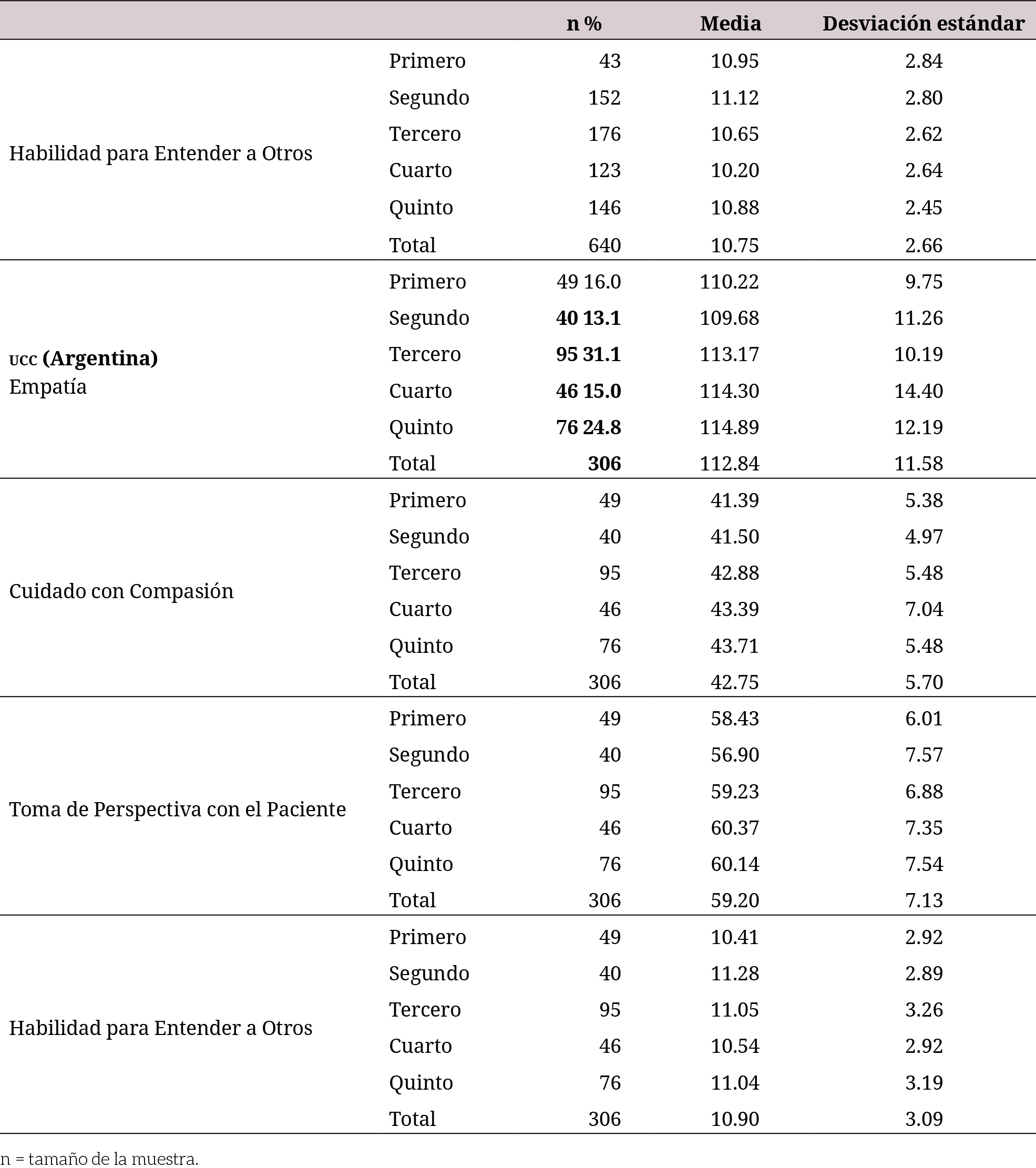 E: Empatía; CC: Cuidado con Compasión; TPP: Toma de Perspectiva con el Paciente; HEO: Habilidad para Entender a Otros.