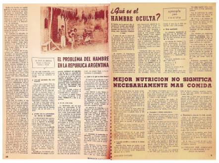 En este sentido, la publicación de un artículo homenaje a la trayectoria médica de Escudero, recientemente fallecido en enero de 1963, apeló a cierta sensibilidad literaria sobre los tempranos esfuerzos de la medicina argentina por restituir lo que, se consideraba, el crónico problema cultural de la mala nutrición de los sectores populares. Precisamente, sobre esas referencias históricas reposó la pauta del editorial y de las colaboraciones expertas que siguieron en esa edición: en Argentina primaba el "hambre oculta" (figura 1).