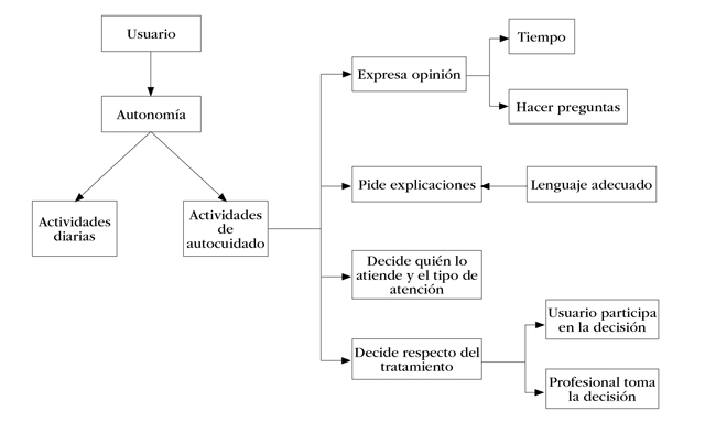 Los participantes describieron los elementos que se deben considerar en una atención de salud que respete la autonomía del usuario. Según la forma en que estos elementos se ejecuten, durante la atención de salud pueden actuar como promotores o limitantes del ejercicio de la autonomía durante la atención de salud: