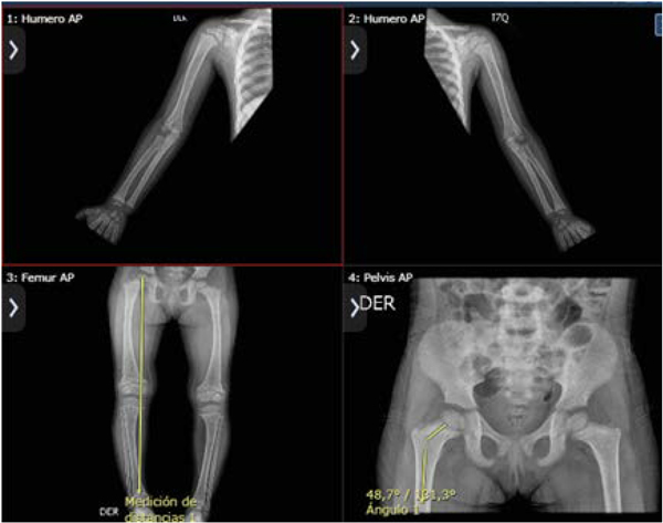 Conclusión: por tratarse de una enfermedad hereditaria poco común, con debut en la infancia y gran impacto en el crecimiento longitudinal y salud ósea que afecta la calidad de vida de los niños, el conocimiento de este caso tiene como objetivo brindar herramientas básicas para un abordaje que lleve a un diagnóstico temprano, dado que esto es clave para el pronóstico, seguimiento y tratamiento multidisciplinario de esta patología.