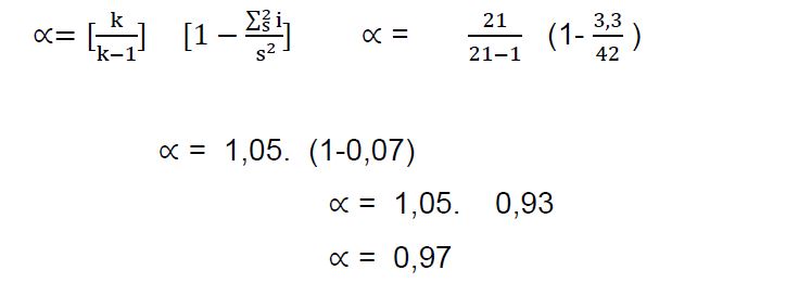 (03) especialista: un (01) metodólogo; (01) en redacción y (01) en el área de matemática. Y para conocer la consistencia interna del instrumento se utilizó la técnica de Alfa de Cronbach, mediante la siguiente fórmula: