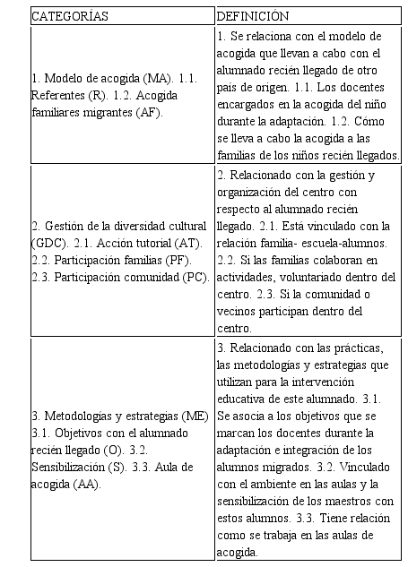 Para profundizar más sobre las fases del análisis de datos cualitativos, después de la recogida de datos procedimos a la reducción de la información que según Dorio, Massot y Sabariego (2004b): “implica seleccionar, focalizar y abstraer los datos brutos en unidades de significado que se denominan categorías de contenido, de acuerdo con unos criterios temáticos determinados” (pág. 339). Consiste en agrupar temas comunes en las transcripciones de las entrevistas y establecer una categorización por cada agrupación. Seguidamente, el sistema de categorización que destacaremos en esta comunicación y que, más específicamente, profundizaremos en nuestros resultados, han sido: el modelo de acogida, la gestión de la diversidad cultural, las metodologías y las estrategias.