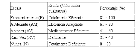 Para la interpretación y análisis de los datos se construyó un baremo a propósito de realizar el análisis basado en el método de la estadística descriptiva procesada en relación a técnicas de relación porcentual (%); para expresar los aspectos valorados en categorías el cual se encuentra detallado en la tabla 1.