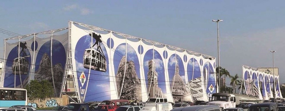 Nascia ali aquilo que Beatriz Jaguaribe (2014) classifica como uma relação paradoxal da Barra da Tijuca com o restante do Rio de Janeiro. Por um lado, um bairro que se define como “a quintessência do novo: uma novidade que é continuamente espetacularizada pelas propagandas do mercado imobiliário, na inauguração de grandes shoppings centers, na construção de novos empreendimentos” (JAGUARIBE, 2014, pp. 66-67)[16] e que faz da arquitetura do medo a materialização da cidade como mercado. Por outro, um bairro que se apropria do repertório urbano e cultural do antigo Rio de Janeiro para ressignificá-lo no enredo da construção de um futuro que só ali pode se concretizar – como fica claro no nomes dados aos condomínios Nova Ipanema e Novo Leblon –, mas também na recorrente reprodução em shoppings locais de marcos arquitetônicos da cidade – como os arcos da Lapa e o calçadão de Copacabana. Na foto abaixo, por exemplo, a fachada do Casa Shopping reivindica seu pertencimento à cidade por meio de verdadeiro pot-pourri de cenários do centro e da Zona Sul, em uma lembrança de que, a despeito da distância física e paisagística, se tratava de um estabelecimento genuinamente carioca.