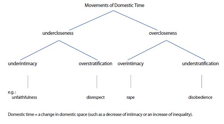 Movements of domestic time include both increases and decreases of domestic distance - undercloseness and overcloseness (see Figure 2). One form of undercloseness is underintimacy: an increase of relational distance between the partners. Another is overstratification: an increase of inequality between the partners (see BLACK, 2011, Chs. 3-4).12 Both cause a great deal of domestic violence. First consider domestic underintimacy.