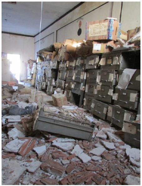 Este fondo documental acumulado mientras funcionó el Dipse (1972-2004), se encuentra bajo la custodia de la Justicia Federal en tanto es elemento de prueba de las distintas causas que investigan delitos de lesa humanidad que tramitan en la provincia. El mismo permaneció alojado en el mismo sitio durante aproximadamente un año hasta que, en el año 2005, la Justicia Federal ordenó su guarda en un depósito del Puesto Móvil n°5 de Gendarmería Nacional (GN) (ver Imagen 2). En el año 2014 el Ministerio Público Fiscal junto a organismos de DDHH de la provincia, ambos querellantes de las causas de lesa humanidad, y la Universidad Nacional de Santiago del Estero suscribieron un Convenio de Cooperación Científica por el cual pude acceder, junto a otros investigadores, al archivo del Dipse. El objetivo era realizar tareas de relevamiento y sistematización de legajos producidos entre 1973-1976, bajo la supervisión de un oficial de justicia, con el objeto de encontrar documentos con posible valor probatorio para los juicios. Previamente, en mi investigación doctoral (2006-2011), había accedido a algunos legajos recuperados por medio de la presentación de habeas data e intenté comprender la lógica bajo la cual habían sido producidos, a través de entrevistas a uno de los agentes que se había desempeñado en la Dipse y a dirigentes políticos del juarismo con quienes indagué sobre la participación de este organismo en el control de la lealtad partidaria (SCHNYDER, 2013).