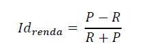 P é o total de responsáveis pelo domicílio com renda de até um salário-mínimo e R é o total de responsáveis pelo domicílio com renda superior a 15 salários-mínimos.