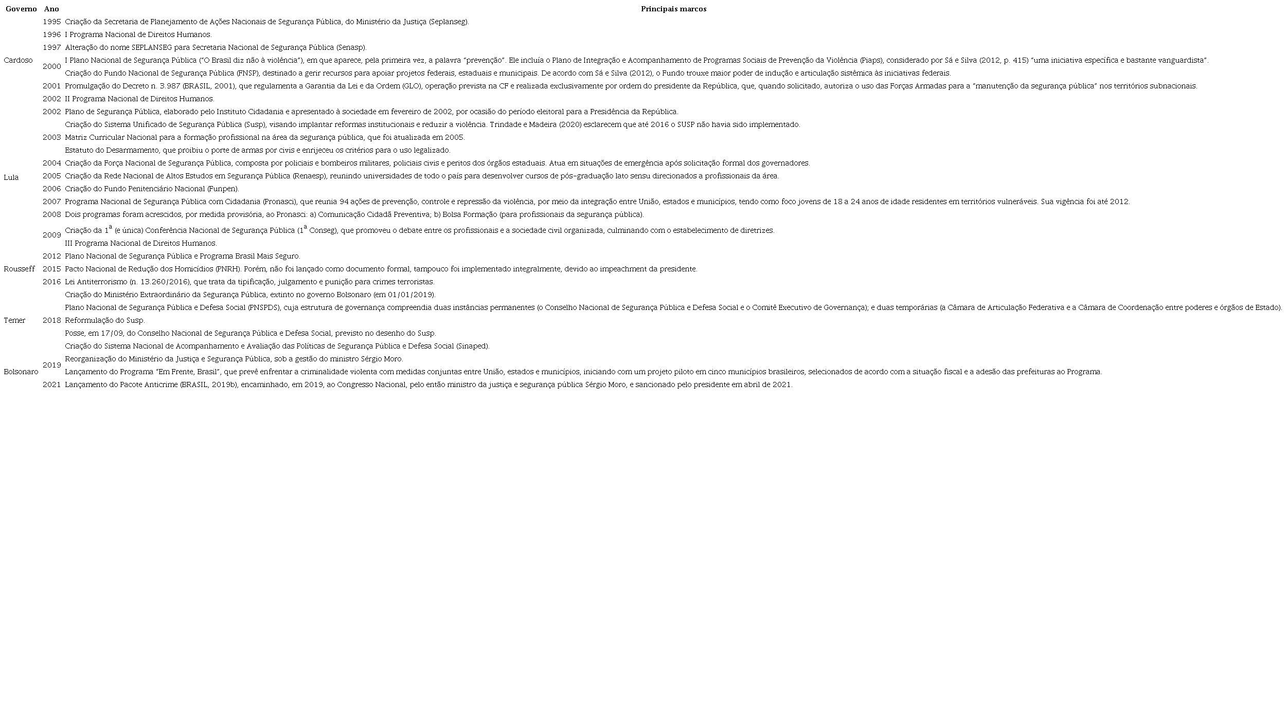 O Quadro 2, a seguir, apresenta um panorama dos principais marcos introduzidos no SSPB, em específico na esfera federal, desde a década de 1990 até anos recentes.