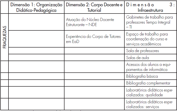 A partir desses dados, realizou-se a pesquisa nos respectivos documentos, dos quais foram extraídas as recomendações e os procedimentos de avaliação de cursos de graduação a fim de embasar a elaboração do referido diagnóstico (ALMEIDA; FREIRE, 2017).