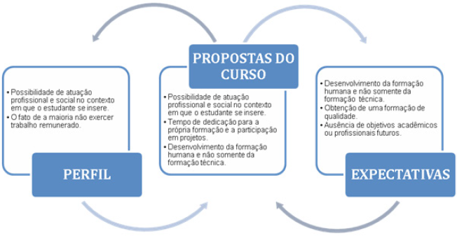 Esse ciclo autoprodutor pode ser identificado no vínculo que se estabelece entre as propostas do curso investigado e o perfil e a expectativa dos estudantes, como podemos observar na Imagem 3.