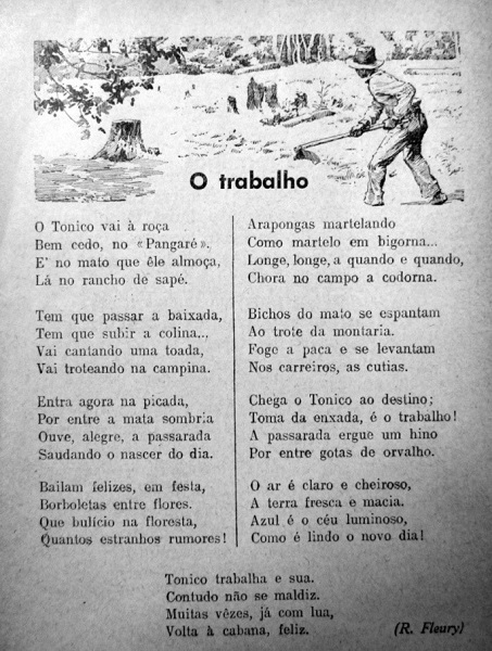 O trabalho no campo foi apresentado por Renato Fleury como idílico, capaz de propiciar a boa formação moral do agricultor. Estes cinco exemplos da cartilha Na roça... servem como ilustração da proposta de educação rural e sua apresentação em materiais didáticos, elaborados pelo autor.