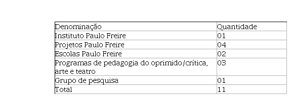 No levantamento dos Grupos no Diretório do CNPq, foi estabelecido o descritor “Paulo Freire” que deveria estar mencionado no nome do grupo, nas linhas de pesquisas e nas palavras-chaves. Os grupos que mencionaram, explicitamente, o Paulo Freire ou que estava subtendida a presença de Freire foram considerados como referência de estudo.