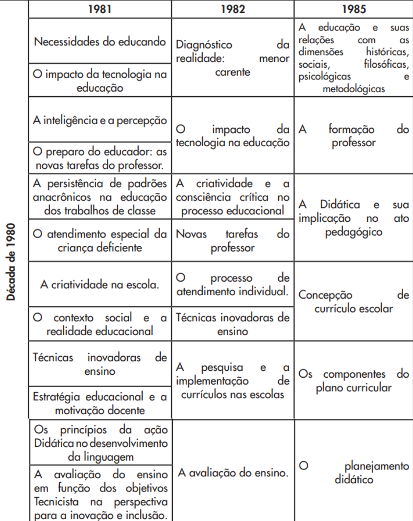 Nessa conjuntura, em 1982 efetivou-se o segundo encontro “A Didática em Questão”, de forma que a preocupação girava em torno de um professor politicamente comprometido com a transformação social (MARTINS, 2012), buscando compreender a relação entre a prática escolar e a estrutura social mais ampla, por meio da relação entre uma Didática pensada e uma Didática vivida (MARTINS, 1998). O contexto marcou um período de revisão crítica e reconstrução da Didática, um momento especial de produção intelectual e de ruptura com paradigmas fortemente instaurados no cenário político e educacional daquele regime.