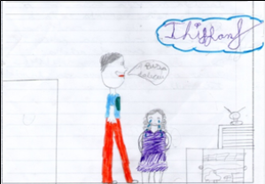 No desenvolvimento do projeto que ensejou a produção dos dados em análise, tornou-se evidente a predileção de vários alunos pela autoexpressão através de desenhos, possivelmente em função de práticas escolares anteriores e/ou pelo entendimento de neles haver um maior espaço de liberdade e menos convenções a serem seguidas (como as de escrita, por exemplo). De certa forma, a criança pode ter no desenho uma forma menos regrada de se comunicar, uma forma de expressão própria; como Gadelha e Menezes (2004) sublinham, entre outros autores, o desenho pode possibilitar a uma criança relatar seus sentimentos, comportamentos e fatos ou eventos que se revelam importantes para ela, e é nesse sentido que trazemos algumas ilustrações apresentadas nessa atividade.