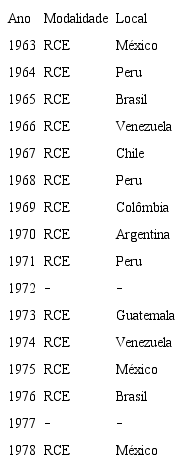 Em relação ao Quadro 01, ao estabelecer a comparação dos países latinos, que se fizeram presentes no Comitê Executivo do Conselho no período de 1958 a 1968, e os locais definidos para a realização das CAs e RCEs de 1963 a 1978, encontramos o seguinte resultado: à exceção da Costa Rica (sede da segunda RCE de 1959), todos os países tiveram assento na instância máxima de decisões do Conselho, ou seja, no Comitê Executivo. Como não obtivemos acesso a documentos da composição do Comitê a partir de 1969, esse elemento pode ser um indício da permanência desses países, em alternância, no referido Comitê e, por esse motivo, com poder de influenciar o local das conferências e reuniões.