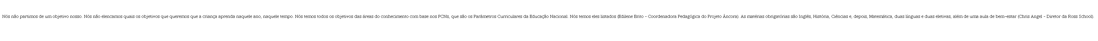 Seguindo as recorrências da forma-escola, temos as matérias, entendidas como o conhecimento socialmente instituído e estruturado. Percebemos que as escolas trabalham com as especificidades de cada área de conhecimento – metas, matérias obrigatórias, linhas de estudo que compõem um currículo mais flexível, mas que mantém os objetivos do conhecimento comum. O conjunto de excertos abaixo ajuda-nos a construir esse entendimento.