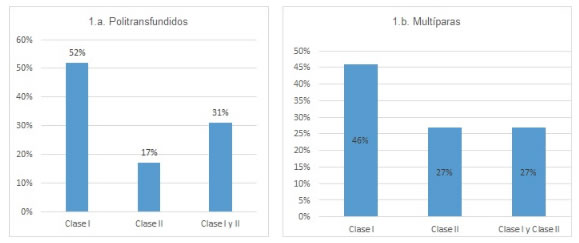 Politrasfundidos N=29 (Clase I: 15, 52%; Clase II: 5, 17%; Clase I y III: 9, 31%). Multiparas N=11 (Clase I: 5, 46%; Clase II 3, 27%; Clase I y II: 3, 27%)