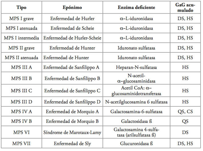 1) Neufeld EF, Muenzer J. The mucopolysaccharidoses. En: Scriver CR, Beaudet AL, Sly WS, Valle D, editors. The metabolic and molecular bases of inherited disease. 8th ed. New York: McGraw-Hill Professional, 2001, p. 3421-52.