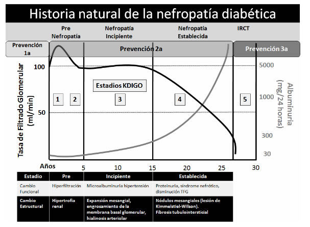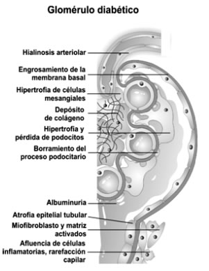 En la aparición y el desarrollo de la ND se conjugan las alteraciones producidas por la hiperglucemia crónica que inducen las modificaciones en la estructura y la función renal citadas a continuación.