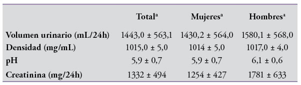 Nota: a individuos de referencia excluidos valores aberrantes; b mg/24h; c mmol/24h; d mEq/24h.