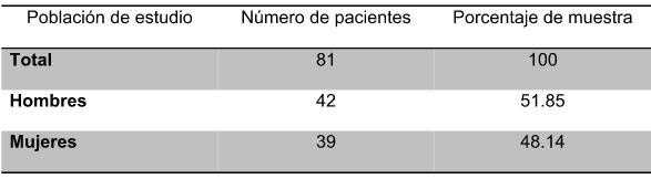 Se tomó como universo de estudio 101 personas de las cuales participaron 81 personas en el estudio.