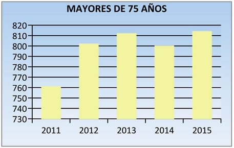 Resultando un total de 3.989 pacientes de 75 años o más, que ingresaron a TSR entre el 1 de enero de 2011 y el 31 de diciembre de 2015, observándose un aumento en el número absoluto de pacientes incidentes. (Grafico 1)