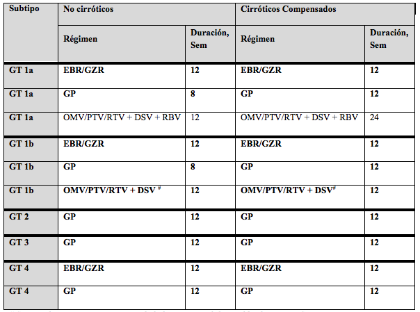 Los esquemas disponibles en nuestro país para el tratamiento de la hepatitis C crónica son: