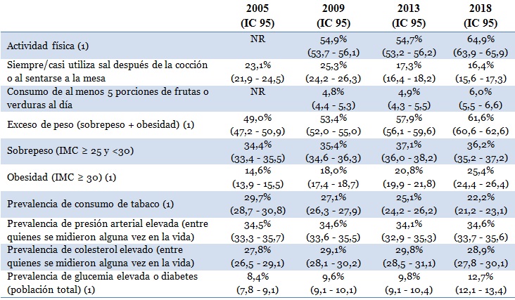 (1): Dato estadísticamente significativo, comparando 2018 con 2013; NR: Dato no reportado