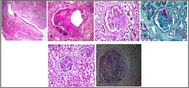 Persistió con RFI, nivel de FK 6,9 ng/ml, anticuerpos por Luminex negativo y ecografía renal sin cambios. Se realiza segunda biopsia renal que informó mesangiolisis, aneurismas de capilares glomerulares con C4d negativo, inmunofluorescencia (+) para fibrina y sin rechazo, hallazgos compatibles con MAT (Figura 1). Parámetros de hemólisis: haptoglobina 21mg/dl, LDH 426U/L, pese a ausencia de esquistocitos en frotis de sangre. Ante los hallazgos clínicos y en biopsia, se sospecha MAT, probablemente secundaria a tacrolimus, por lo que se suspende y se rota a belatacept e inició de plasmaféresis con previa toma de muestra para ADAMTS 13, con ulterior mejoría de hemólisis. Intercurrió con neumonía lobar, la cual se trató, seguido de compromiso severo del hepatograma (TGO 119 UI/dl, TGP 136 UI/dl, FAL 1072 U/l, BT 62,9 mg/dl, BD 48,7 mg/dl, BI 14,7 mg/dl), sin posibilidad de biopsia hepática transyugular por situación clínica.