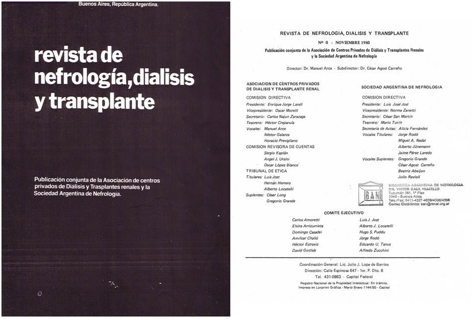Comenzando la década de 1980, comienza a publicarse la Revista de Nefrología, Diálisis y Trasplante, que surge como instrumento de difusión conjunto de la entonces Asociación de Centros Privados de Diálisis y Trasplante y la SAN (Figura 3). La revista sigue publicándose desde entonces en forma ininterrumpida, hoy como publicación de la Asociación Regional de Diálisis y Trasplantes Renales y de la Asociación Nefrológica de Buenos Aires (ANBA). A fines de los setenta y en la década del ochenta se produjo una gran expansión de centros y servicios de diálisis crónica hacia el interior de todo el país, habiendo hoy, según reporte SINTRA-INCUCAI, quinientos ochenta y siete centros.(2)