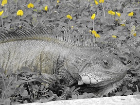 Iguana en los jardines a la Universidad Estatal de Milagro, Guayas, Ecuador