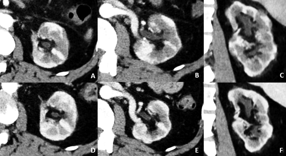 Tras el tratamiento las lesiones pueden desaparecer y condicionar una cicatriz cortical residual.(13) Aunque la NTI no tratada de tiempo de evolución puede ocasionar enfermedad renal crónica irreversible que se manifestará en las pruebas de imagen como un adelgazamiento del espesor cortical irreversible.(1) (Figura 2)