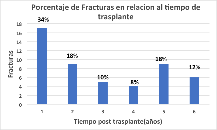 Los receptores de trasplante renal tienen un alto riesgo de fractura comparados con la población general.(1) Las fracturas se asocian con morbilidad, mortalidad y altos costos económicos.(2) Desde los años setenta se comenzó a estudiar la incidencia y los factores de riesgo de fracturas en receptores de trasplante renal sin encontrar que su causa/efecto tenga un alto grado de evidencia.(3)